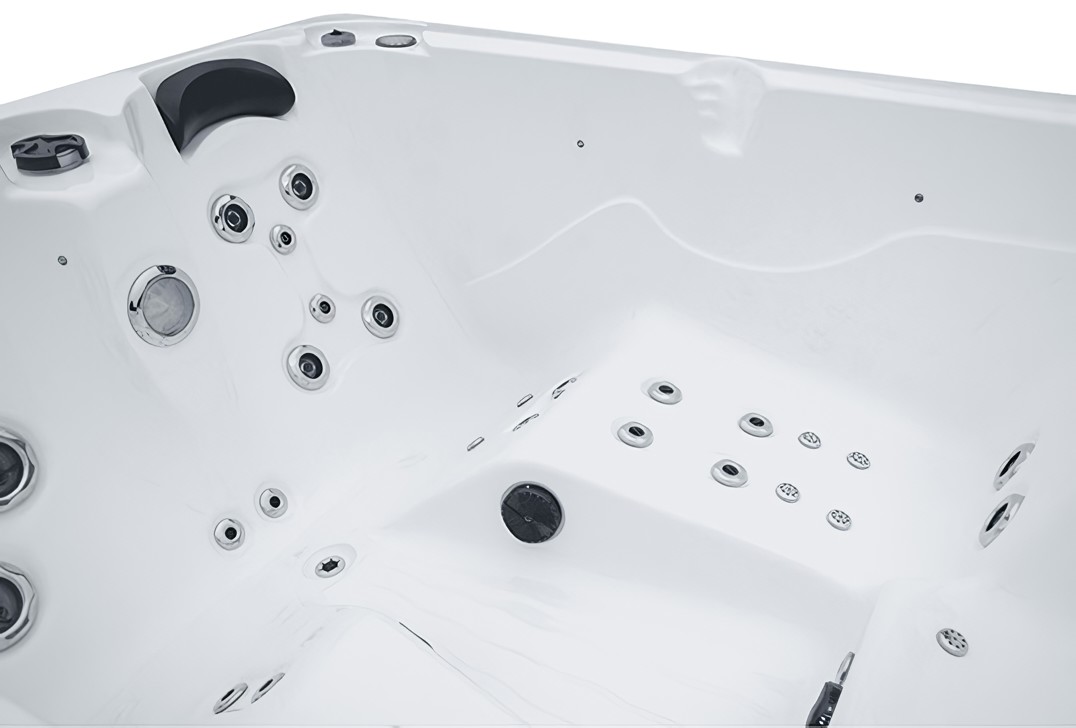 Для изделия таких размеров, в гидромассажном СПА-бассейне Ловиа Спа ZR6009 установлено довольно много форсунок - 30 штуки. Через них вода и воздух направленно воздействуют на тело, производя желаемый гидромассажный эффект. Каждый пользователь может индивидуально регулировать силу потока.